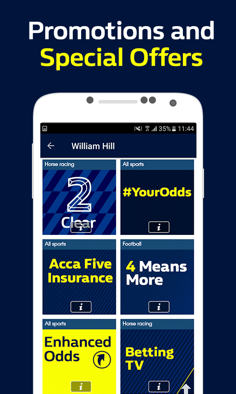There are countless of opportunities available at the sportsbook. William Hill constantly launches enhanced odds and other promotions related to popular sporting events. On top of that, there are some ongoing deals like acca boosters, best odds guaranteed for horse racing, and much more. Simply check the Promo page on regular basis to stay informed about the latest opportunities to earn extra cash.